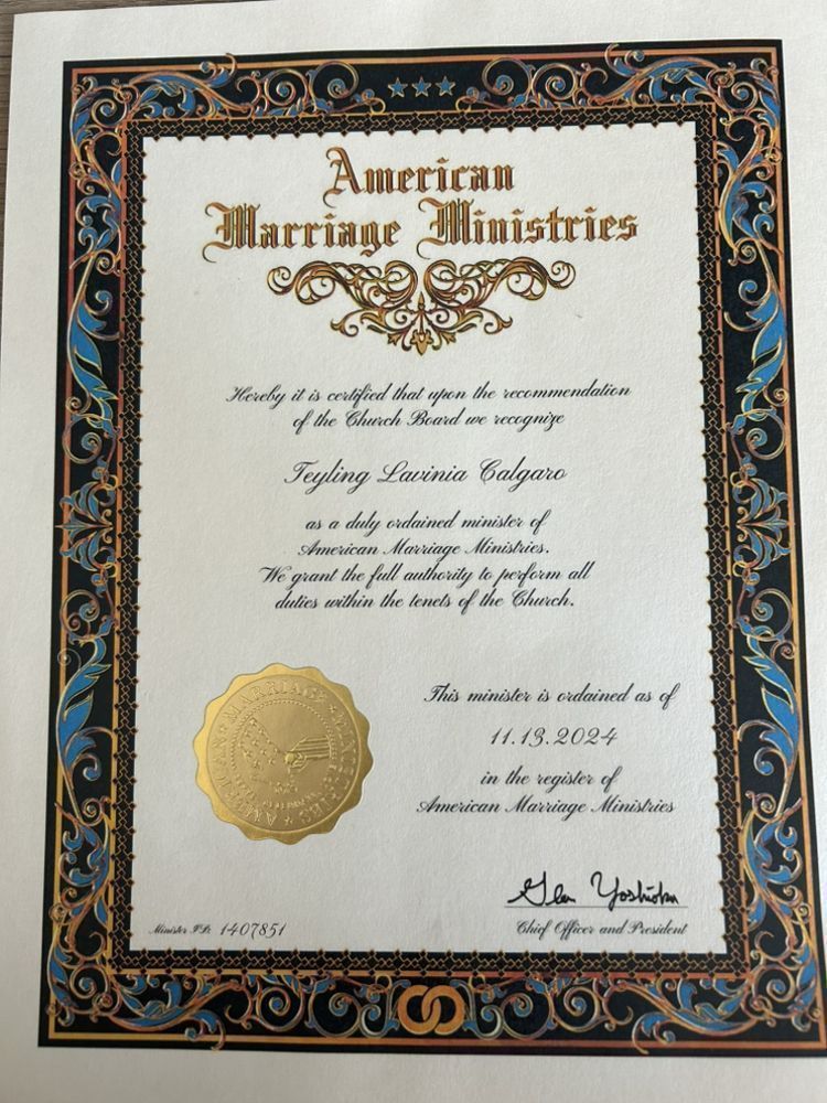 Teyling is an amazing officiant. I reached out to over a dozen officiants and was quoted $500 plus to officiate a wedding for two people. Teyling communicated with us (I was fortunate enough to find her the week we were planning to elope). Her officiating script was personable, heartwarming professional and funny. It was everything we wanted and more. Thank you Teyling for everything you added so much to our special moment.